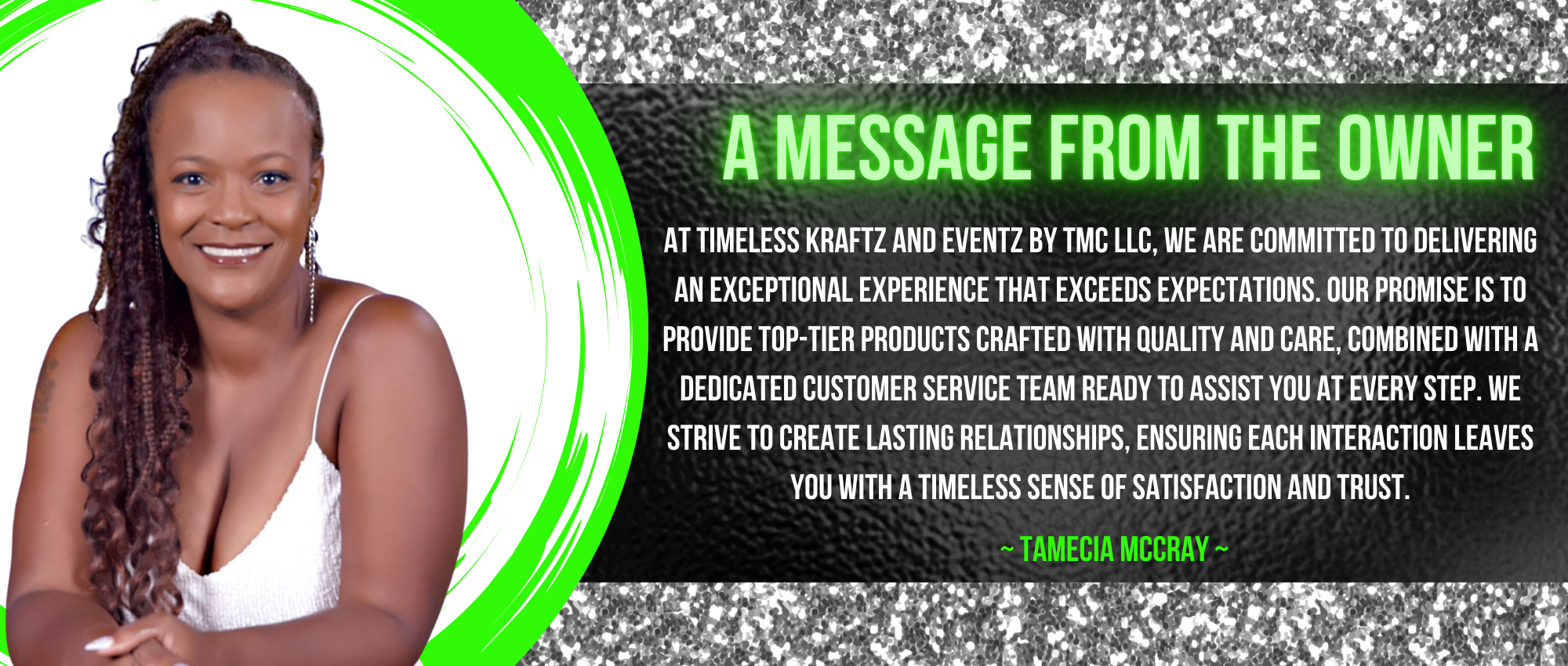 Timeless Kraftz and Eventz by TMc LLC. All Rights Reserved. Powered by Shopify.